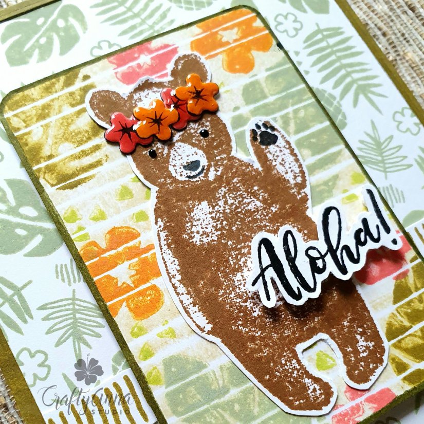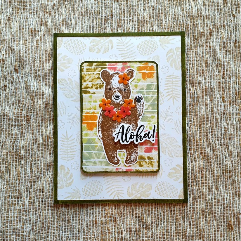 When I was young my father would takes us on vacation to Hawaii almost every summer. Though we lived in a tropical country, there was just something about Hawaii that really felt like home for him. Because of this I had so many wonderful memories of Hawaii. Maybe that’s why I tend to gravitate towards anything tropical. When Concord & 9th came out with their Tropical Vibes Stamp set, I simply had to have it! What better way to pair it with one of my fave C&9th stamp set, Hi There Bear! Sadly, this stamp set is being phased out but lucky for you its on SALE at their website.