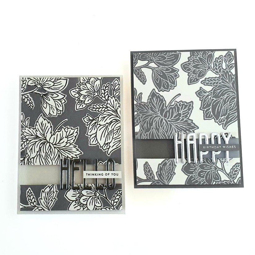 For the cards above I used a light gray and dark gray cardstock. I used silver embossing powder on the dark gray and gunmetal embossing powder on the light gray.