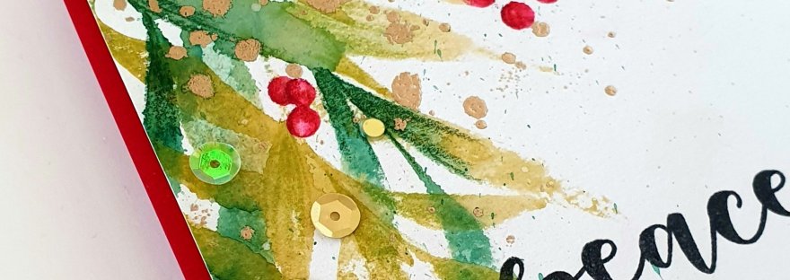 Given that I have a lot of catching up to do, I challenged myself into making a Christmas watercolor card in minutes! I wanted to make a card that looked like I spent hours making them! And this is what I thought of – inspired by a class by Debbie Hughes that I took a year ago on http://www.onlinecardclasses.com.