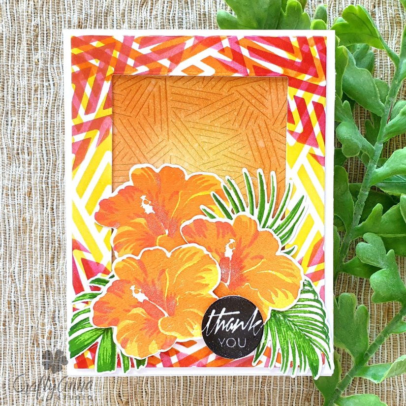 For the flowers, I used the Build-a-Flower Hibiscus stamp set and used the same inks for the layers, but skipped the pistil because I wanted to give it a more graphic look and feel.