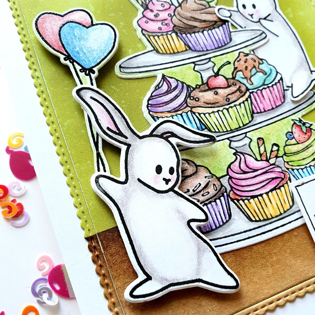 This is a great card. I love it! The bunnies make the tier of cupcakes come alive.