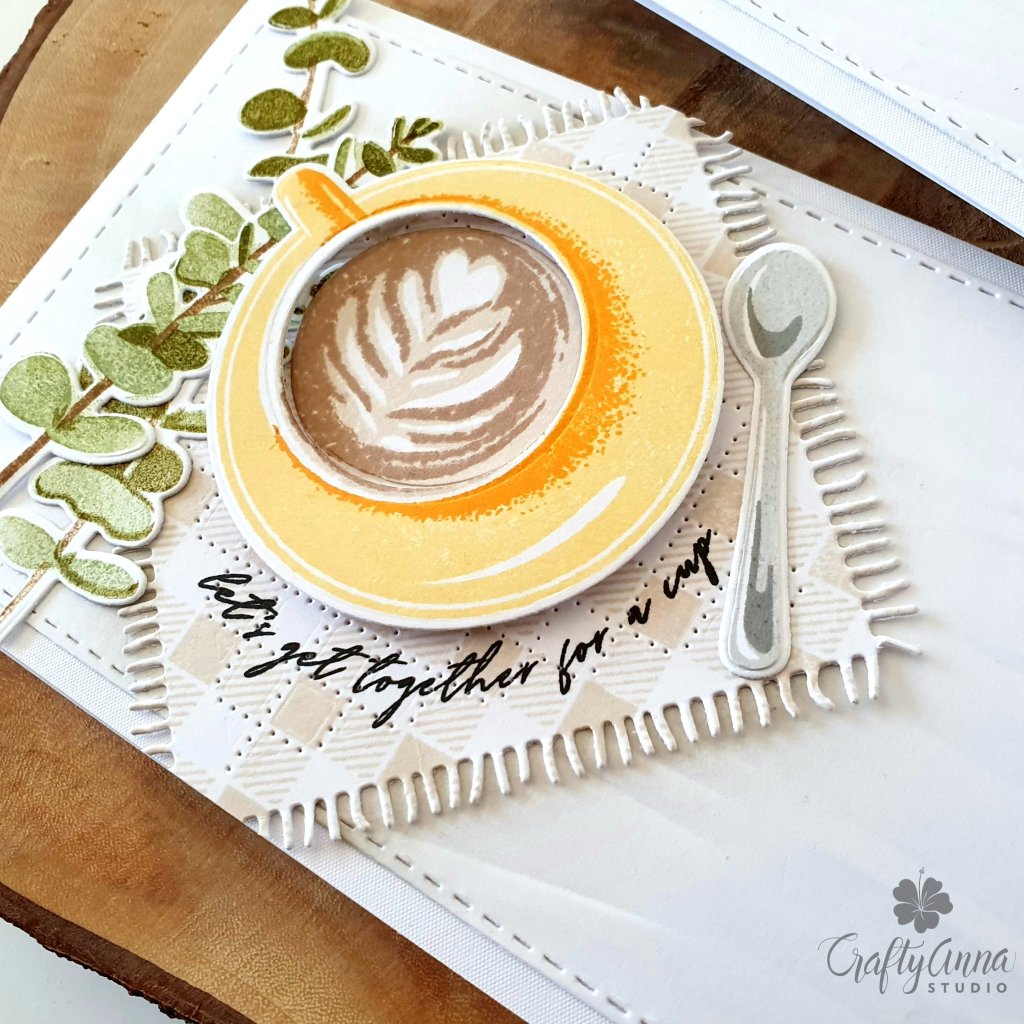 I used The Greetery Cozy Cup, Simple Things stamp set and Cozy Cup Coaster die as the design elements on my card.