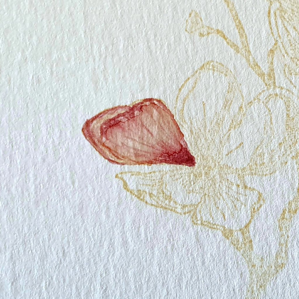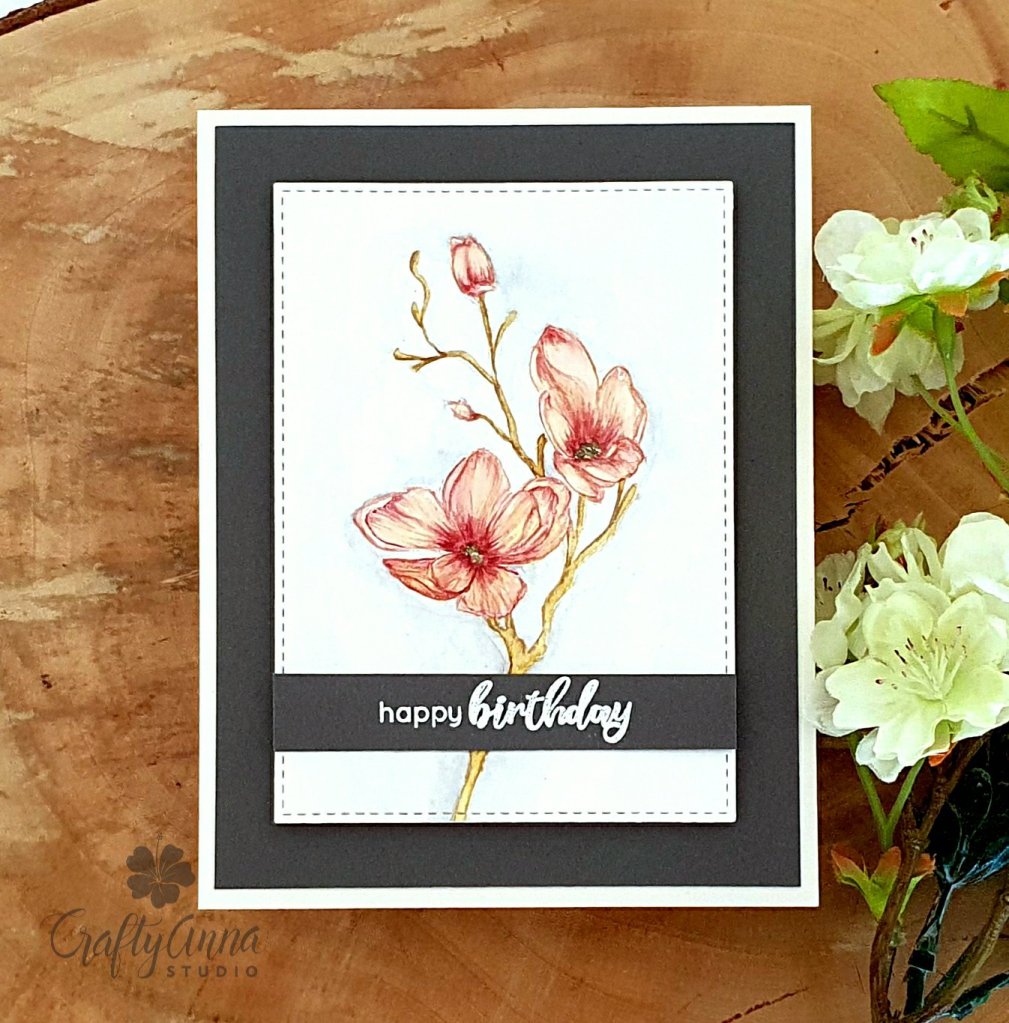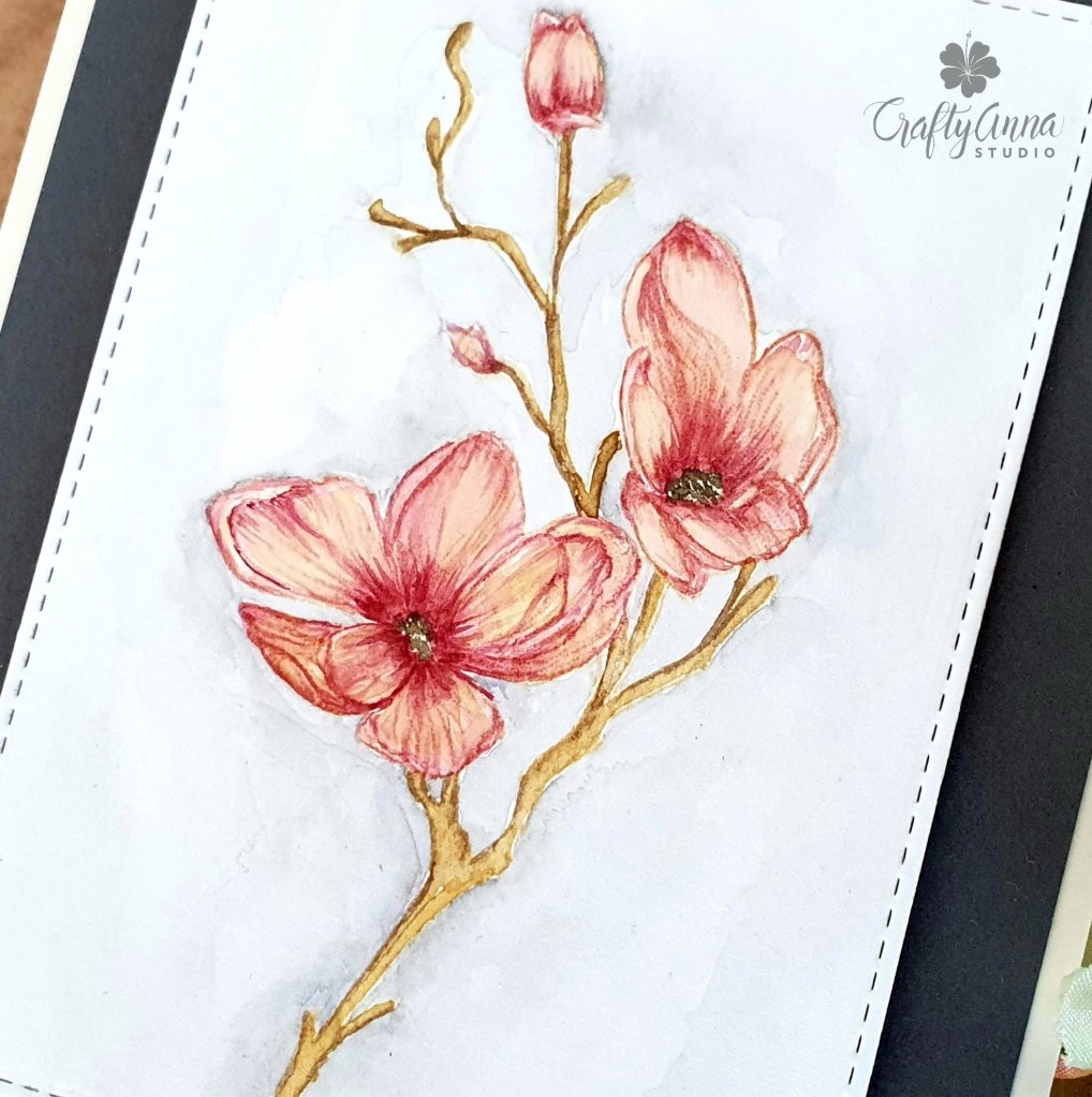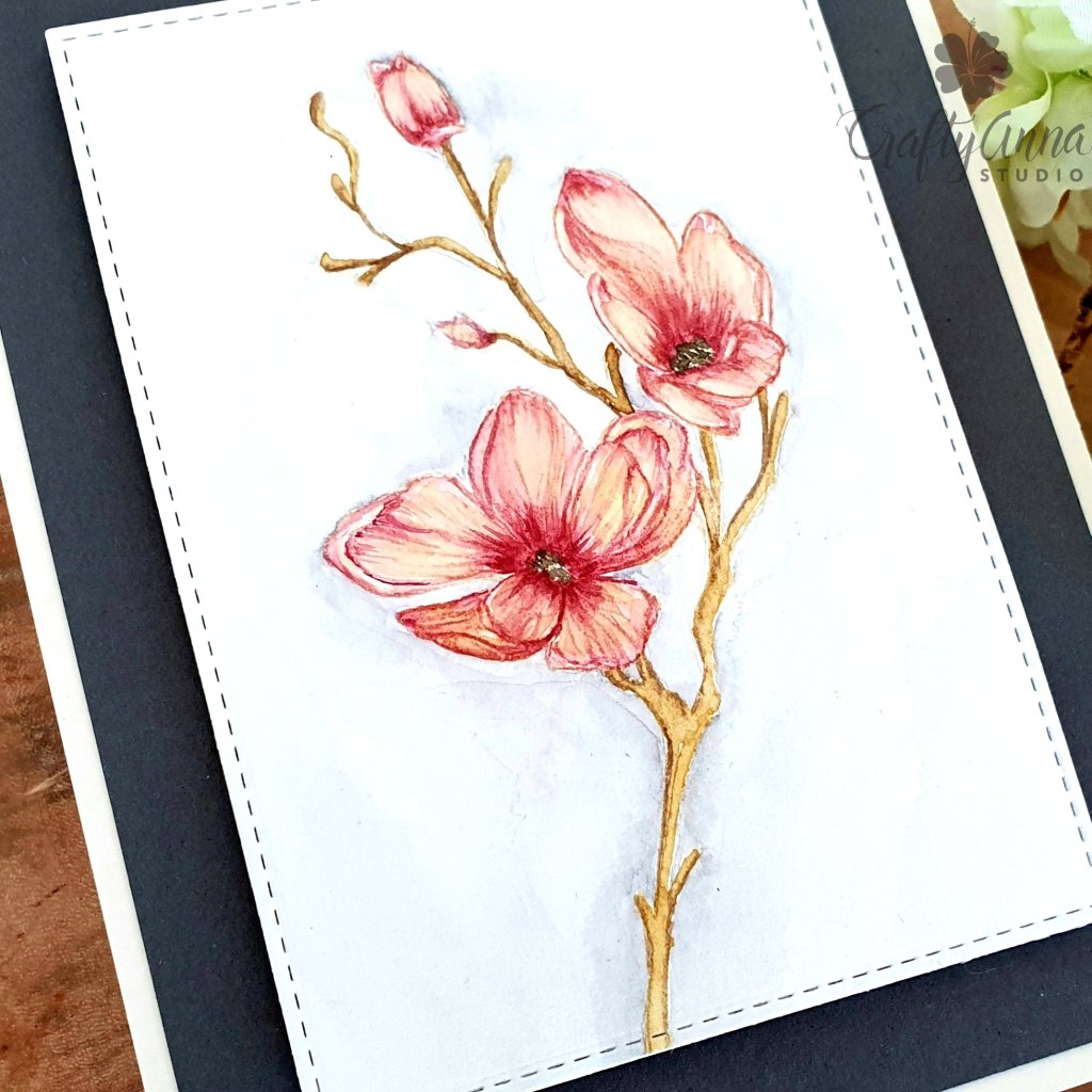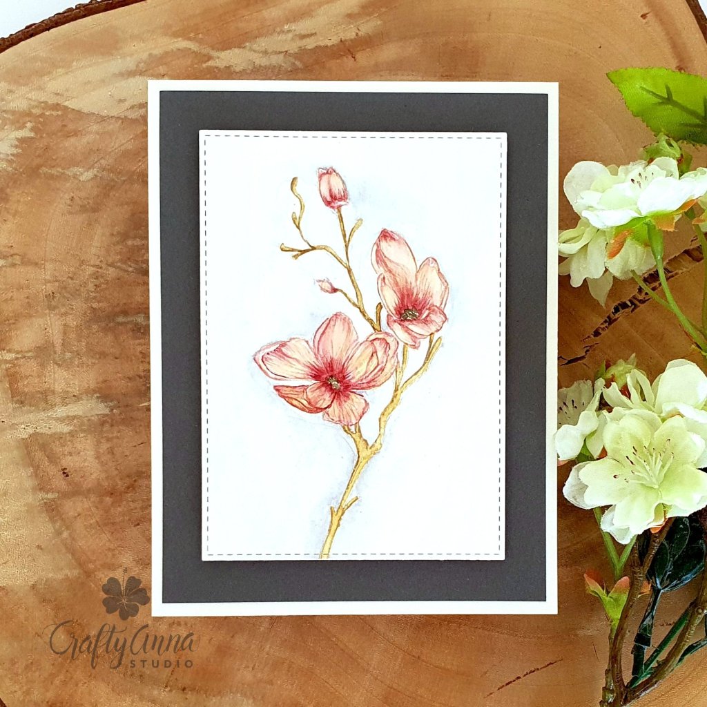 Lately, I have been a little obsessed with botanical illustrations. I purchased several KEW Botanical Garden Illustrative books on Amazon to feed my obsession. I know that I would probably never ever become a botanical watercolorist or illustrator but I did want to give it a try. I mean, why not, right? This is the card I created. I will be giving this to my mom for her birthday as she is a lover of plants and flowers. She runs our family farm which we had turned into a farm resort a few years ago. She’s been a little stressed out lately so I am hoping this card will give her a sense of calm