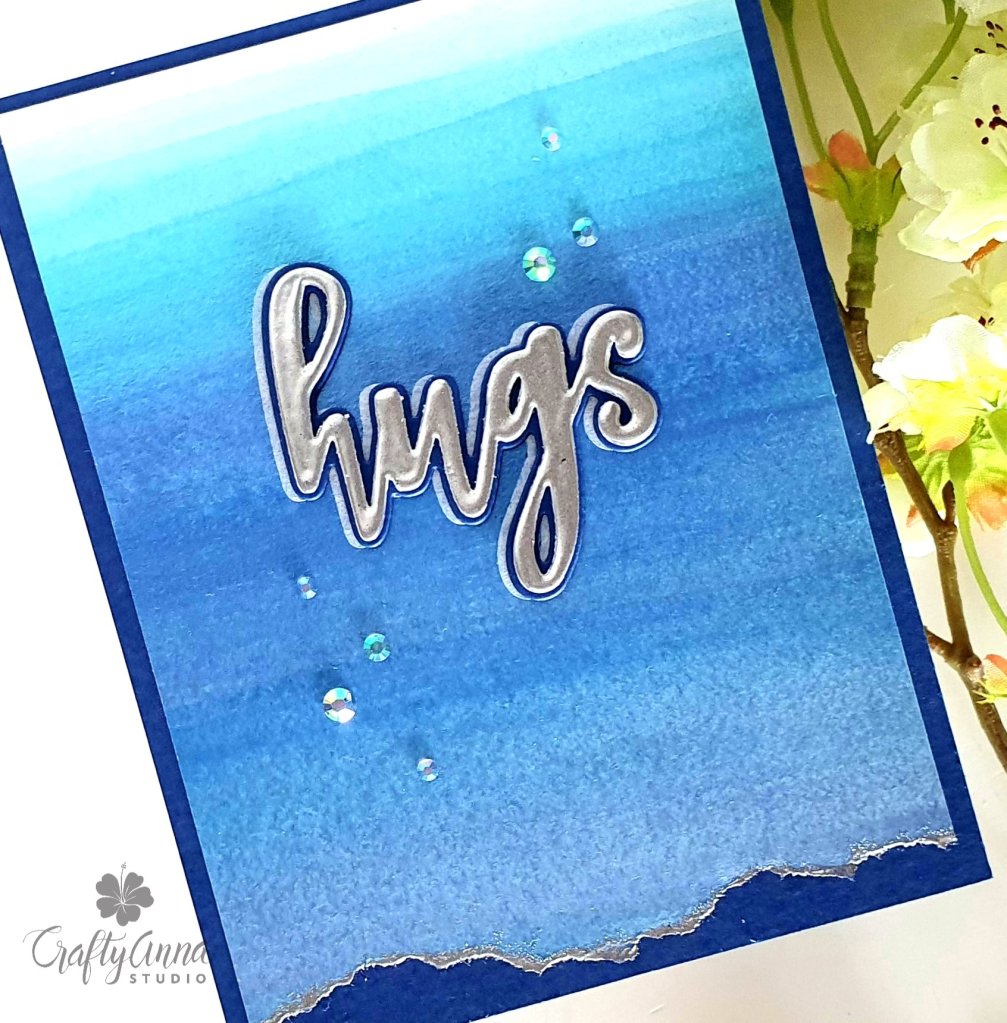 I love the gorgeous layers of blues, Anna! It makes it so happy and yet elegant! The addition of the silver die cut sentiment and silver along the bottom edge, it maintains the elegance!
