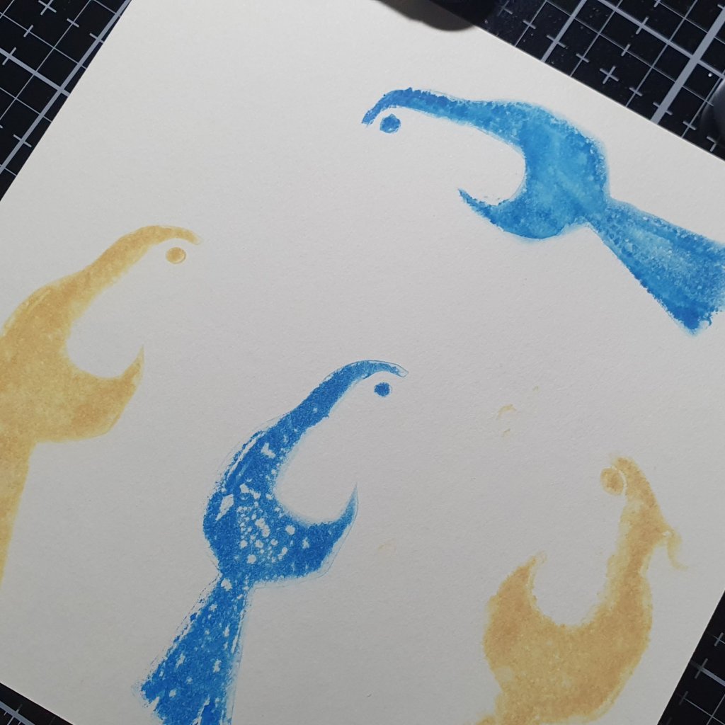 The effect was not completely perfect so I took some ink and smooshed it onto my mat and with a waterbrush I used it to fix the blotchiness.