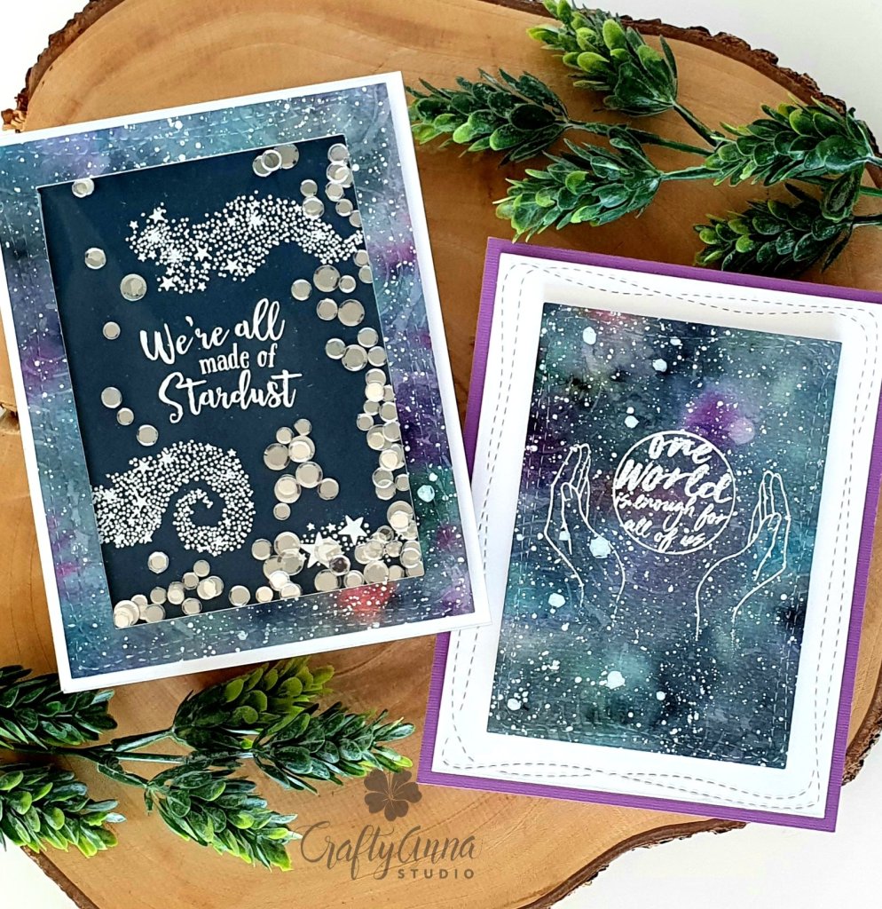 Your cards are beautiful! It sounds like this MMH box was perfect for the message of this hop! I love that you got two cards out of that one background die, too. I havenβt tried galaxy backgrounds but I really want to give it a try!