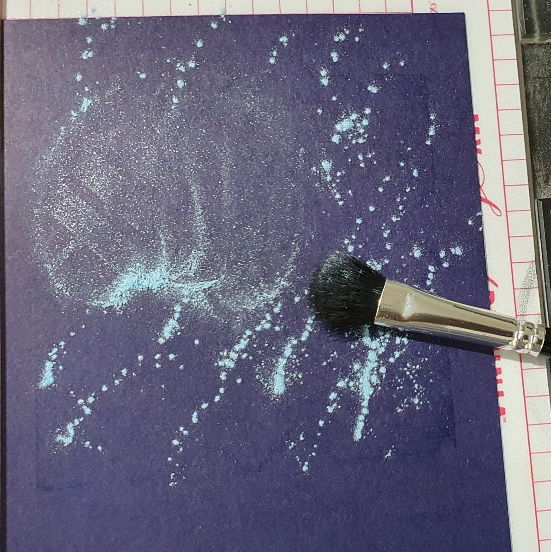 Then to add some extra interest, I flicked some of the Sterling Pigment onto the stamped image.
