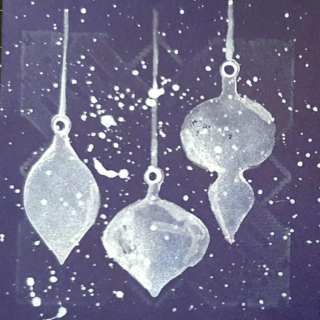 I also made another one, this time using Galaxy Gold Powder for the background. Gilded Metallic Aqua Pigment for the Baubles and the splatters. And heat embossed the image using Gilded Embossing Powder.