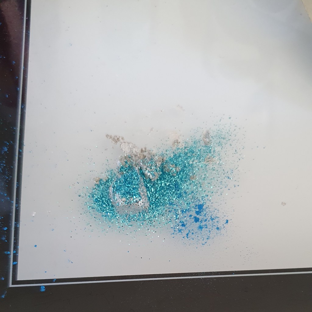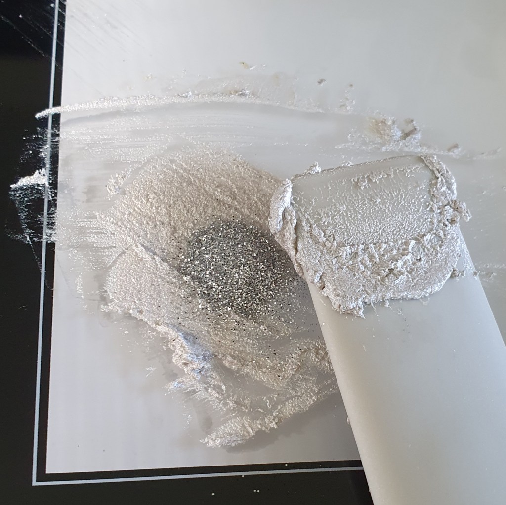 For the second color, I used the same platinum mousse but this time I added a little color by sprinkling a little Nuvo Blue Blitz shimmer powder and blue glitter.