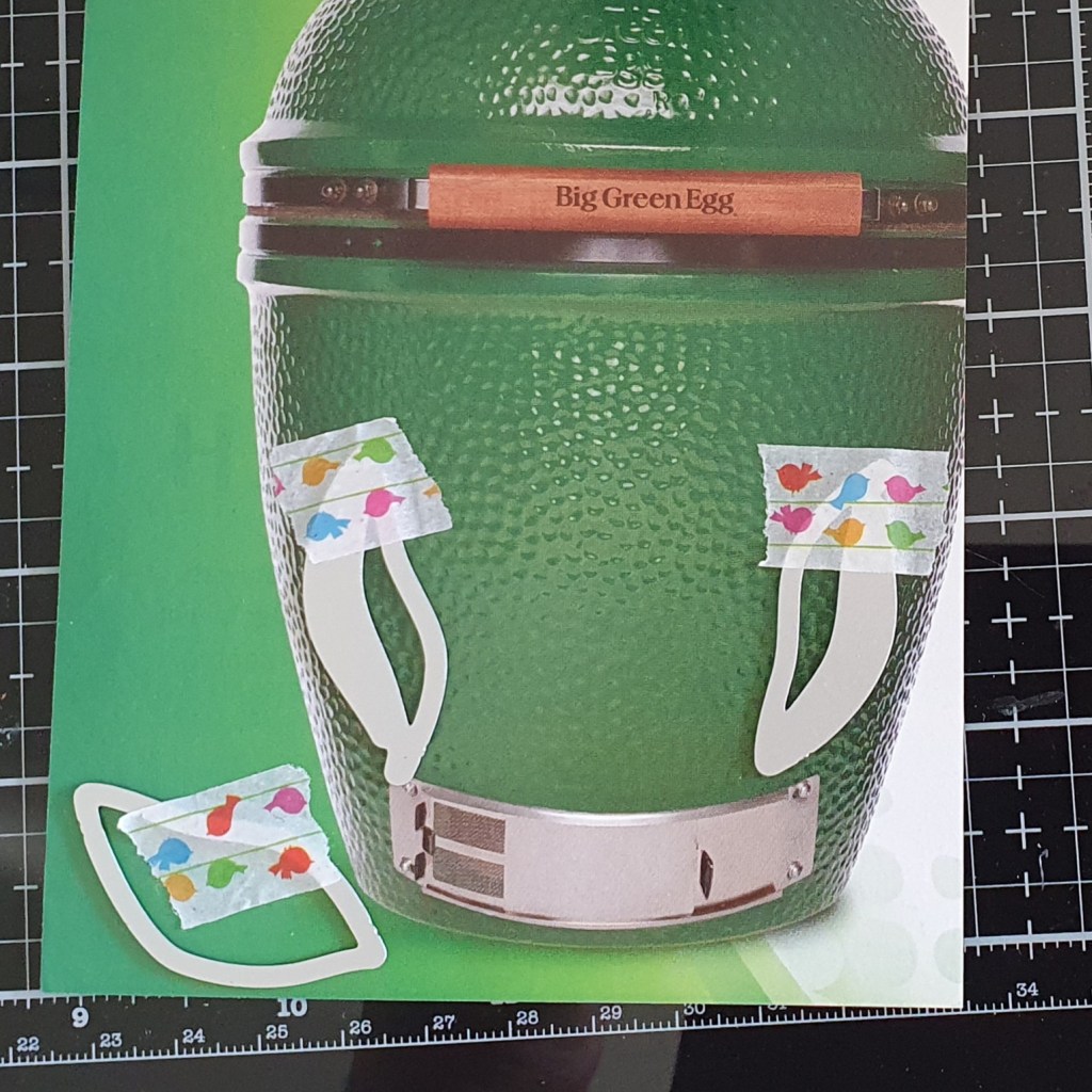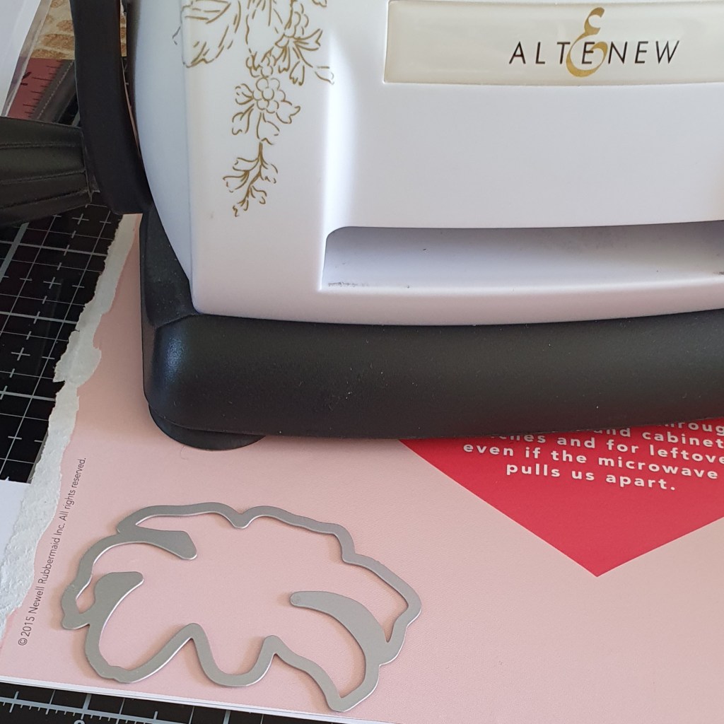 I try to keep the little die cut pieces together in their little “nest” because later on it will make it a lot easier to ink up the edges to give it more depth and dimension. I secured them temporarily at the back with washi tape.