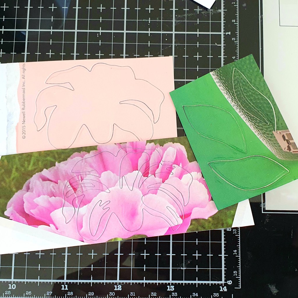 I revisited the very first card I made with the Peony layering die set and decided to CASE my own technique. In that project I used magazine pages as the design elements for my images. If you are interested in reading all about it, you can check that project linked here.