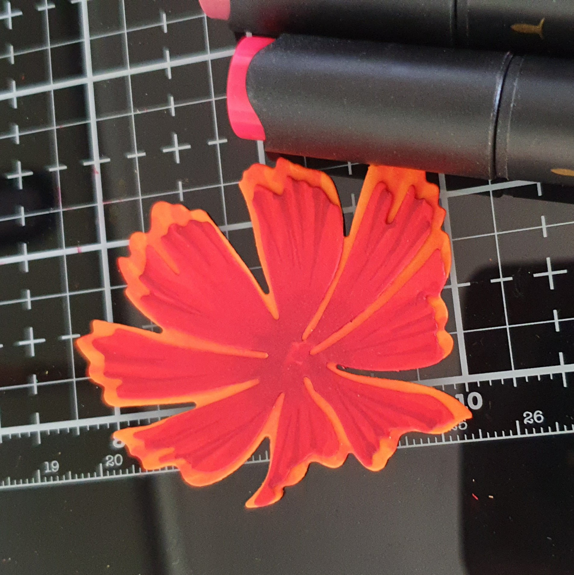 To create a more realistic look to the petals, I decided to add some additional coloring with Altenew Artist Markers – interestingly enough the artist markers set is called Red Cosmos.