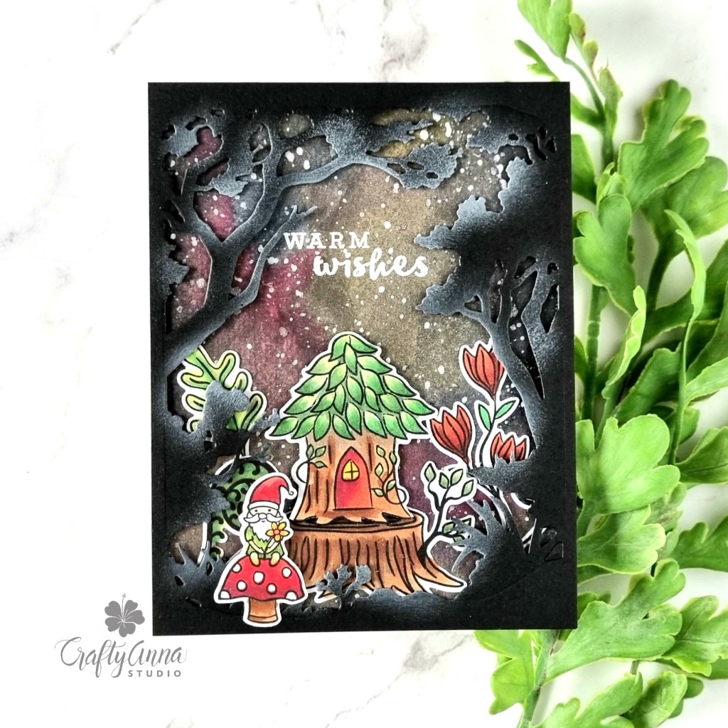 Oh wow! These cards are stunning, Anna! Similar but not same at all galaxies! Love so much the New Year one: the shimmer powders are so vibrant and I’m sure the sparkle is gorgeous in person! The fairytale scene is just adorable, especially that little gnome π The Christmas card gives me the vibe of a calm winter night. You did a great job!
