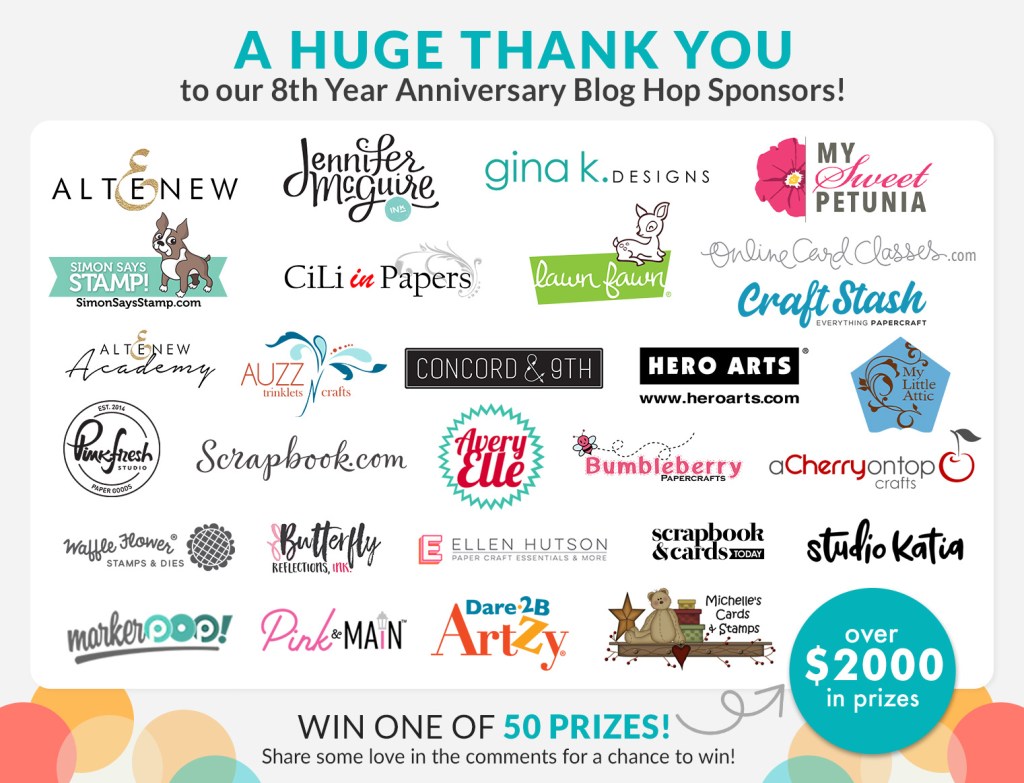 To celebrate this special occasion, Altenew over $2,000 in total prizes! Altenew is giving away a $80 Gift Certificate to 5 lucky winners and one Altenew Academy Online Class($8.95 value) to 15 lucky winners. There are also 26 awesome companies/crafty friends who are celebrating with us, and they are offering the following prizes: