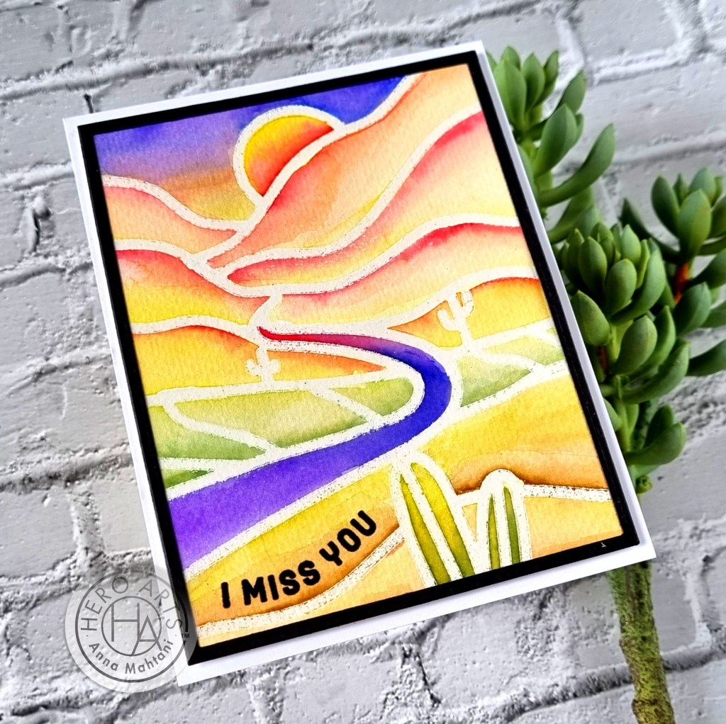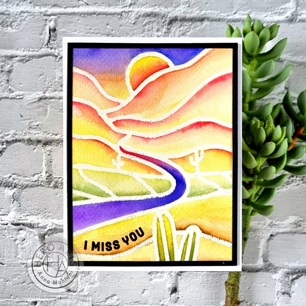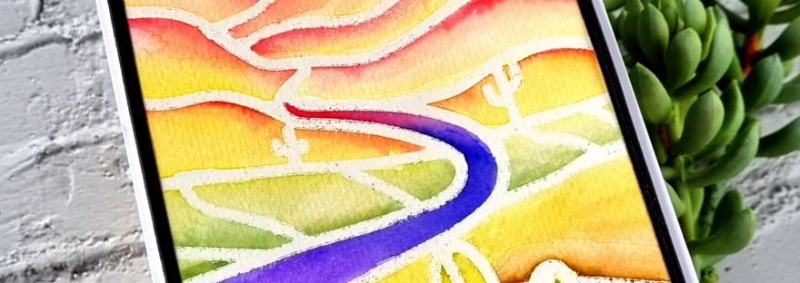 Hi everyone! I have a simple and fun technique for you today – using your stencils to heat emboss. I will be using a stencil from the latest release from Hero Arts called Desert Road.