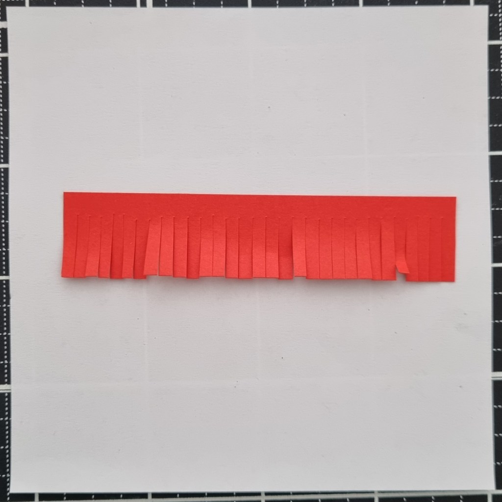 For the tassles, I used a piece of the cardstock left over from the window and cut it into half inch strips. Then with my scissors, I cut the fringes about 3/4″ of the way up. I rolled it up then added a 1/8″ gold band around the top of each tassle to secure it. I then adhered the paper tassle to the bottom corners of the lantern with thin strips of gold cardstock.