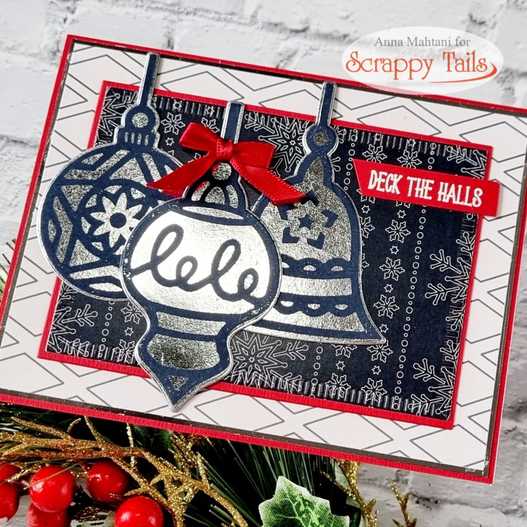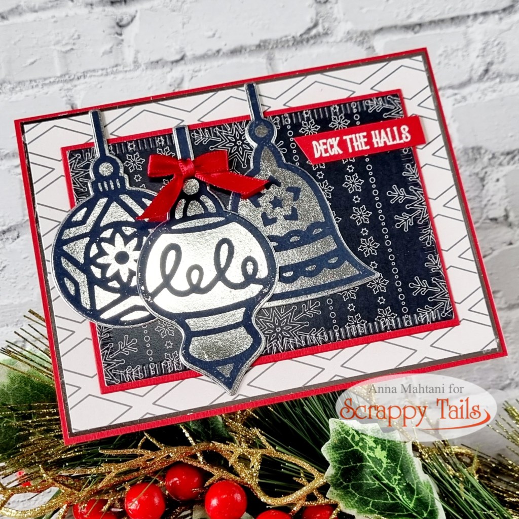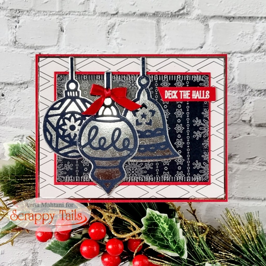 Hello crafty friends! I’m sharing cards I made with beautiful Triple Ornament hot foil plates from Scrappytails Crafts. I paired it with the paper pack from the Candlelight Christmas collection.