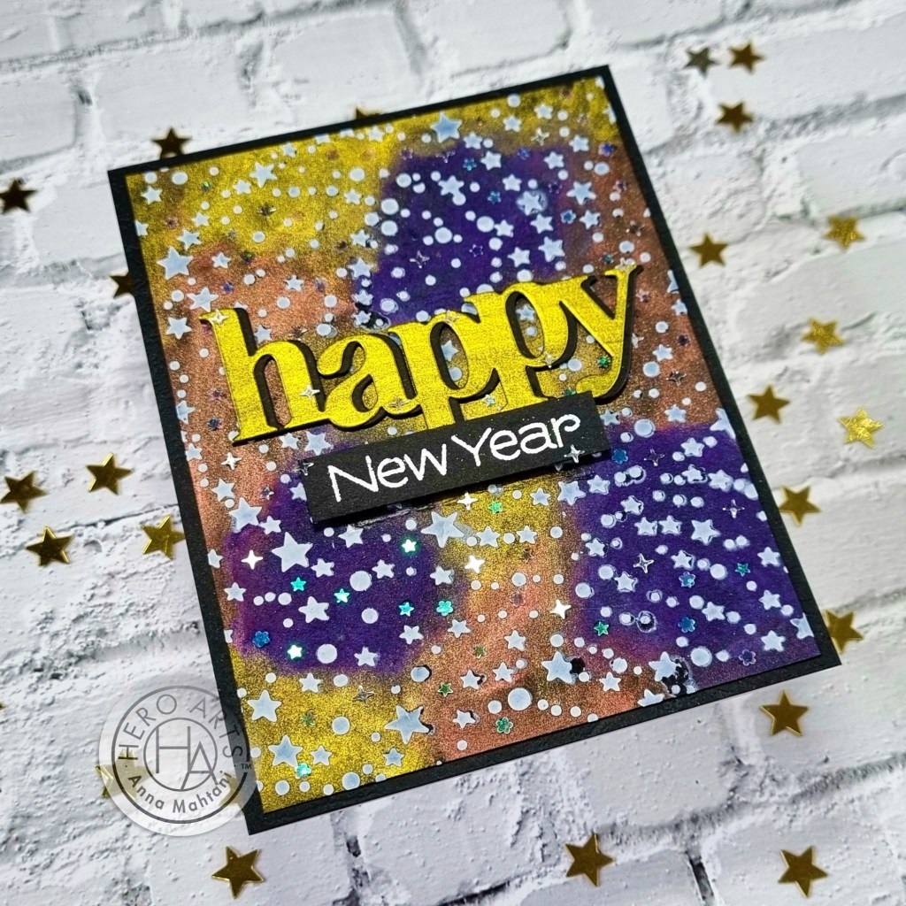 I created this New Years themed card using the leftover background I made on my previous post. If you would like to see the technique on how I created the background of this card, I have a tutorial on my You Tube channel linked here. I love creating inky backgrounds, and galaxy backgrounds are the most fun to create!