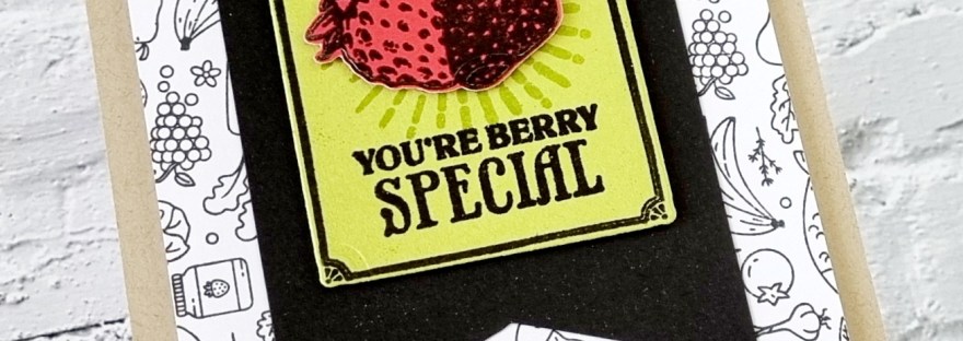 I made three simple cards using the beautiful Produce Label stamp set paired with the Farmer’s Market bold print cling stamp.