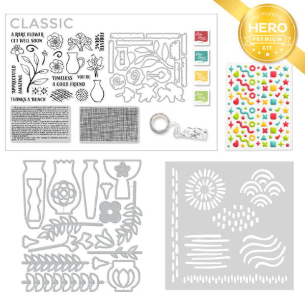 Bu thaving said that, I know I can still use them to die cut with. I will use the wonderful fancy dies that came in the Hero Arts My Monthly April 2023 kit to die cut flowers and leaves for my cards.