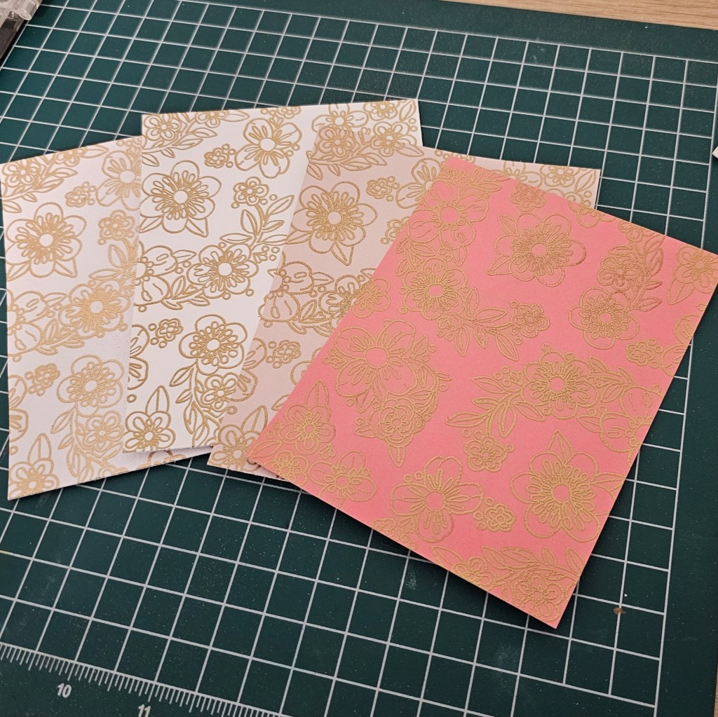 Then I used this template over and over again to create several panels but this time I stamped it with embossing ink and heat embossed with gold embossing powder.