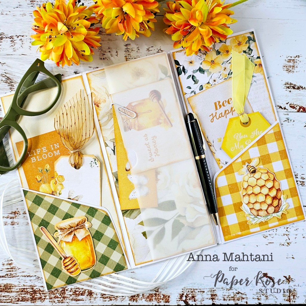 Hello! Do you know what the latest buzz is? Paper Rose Studios’ Bees Butterflies Collection! I am excited to share another journal/folio project. I created a journal/folio using this collection and I made it using junk or used envelopes as the base.