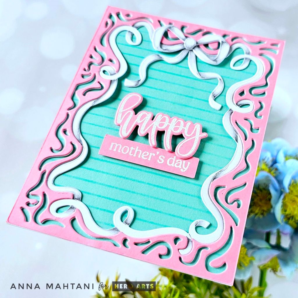 The sentiment, Happy Mother’s Day, was white heat embossed on the same pink cardstock.