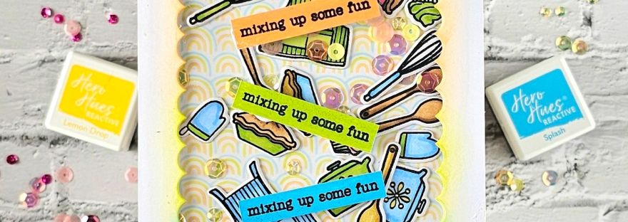 Hi crafty friends! I am sharing a shaker card I created using the What’s Cookin’ Stamp & Cut set from the Hero Arts June 2025 release. The Hero Arts Creative Team is having a hop ver on Instagram to celebrate the new release. Details of the hop at the end of my blog post.