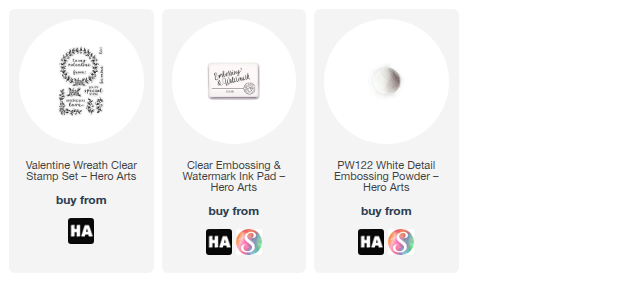 Once dried, I prepped the whole board with anti-static powder. Then I stamped floral images from the Valentine’s Wreath stamp set on each corner with embossing ink, then sprinkled with white detail embossing powder. Then I heat set it.