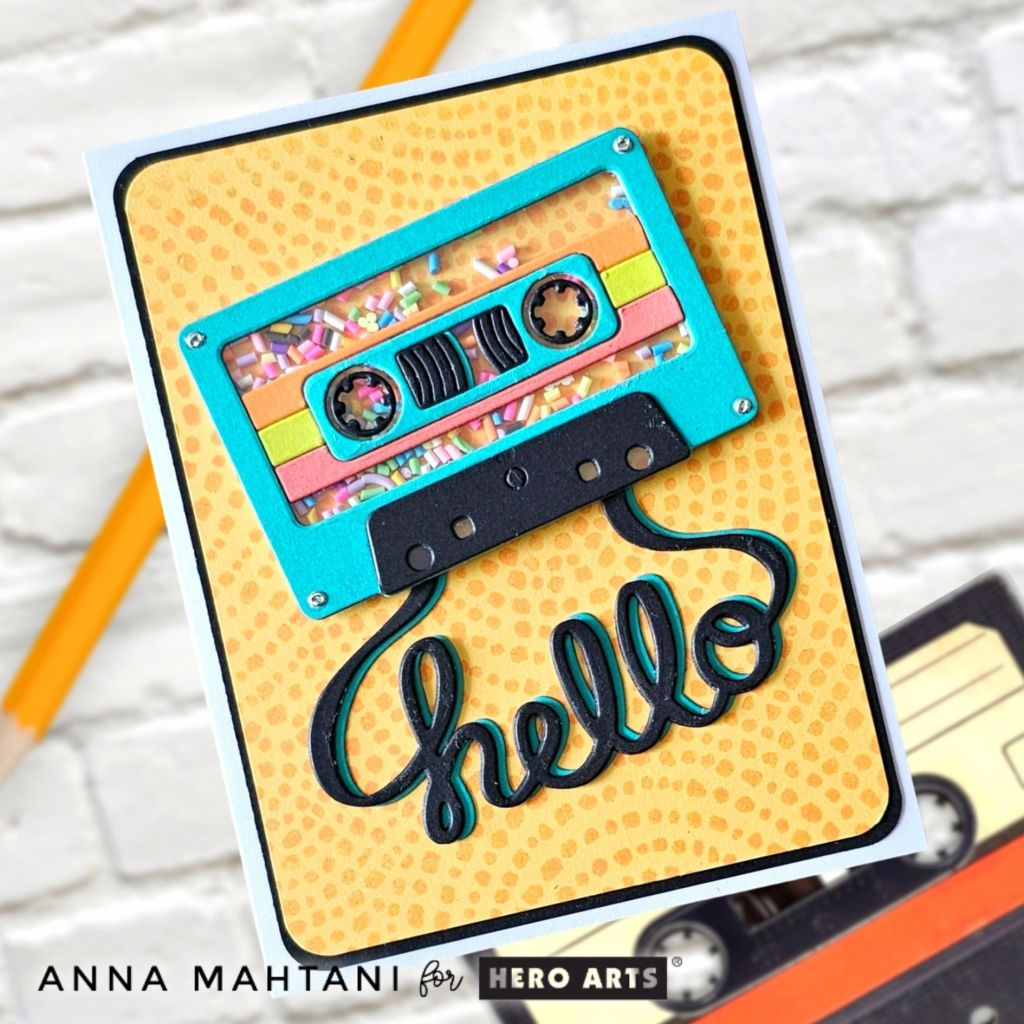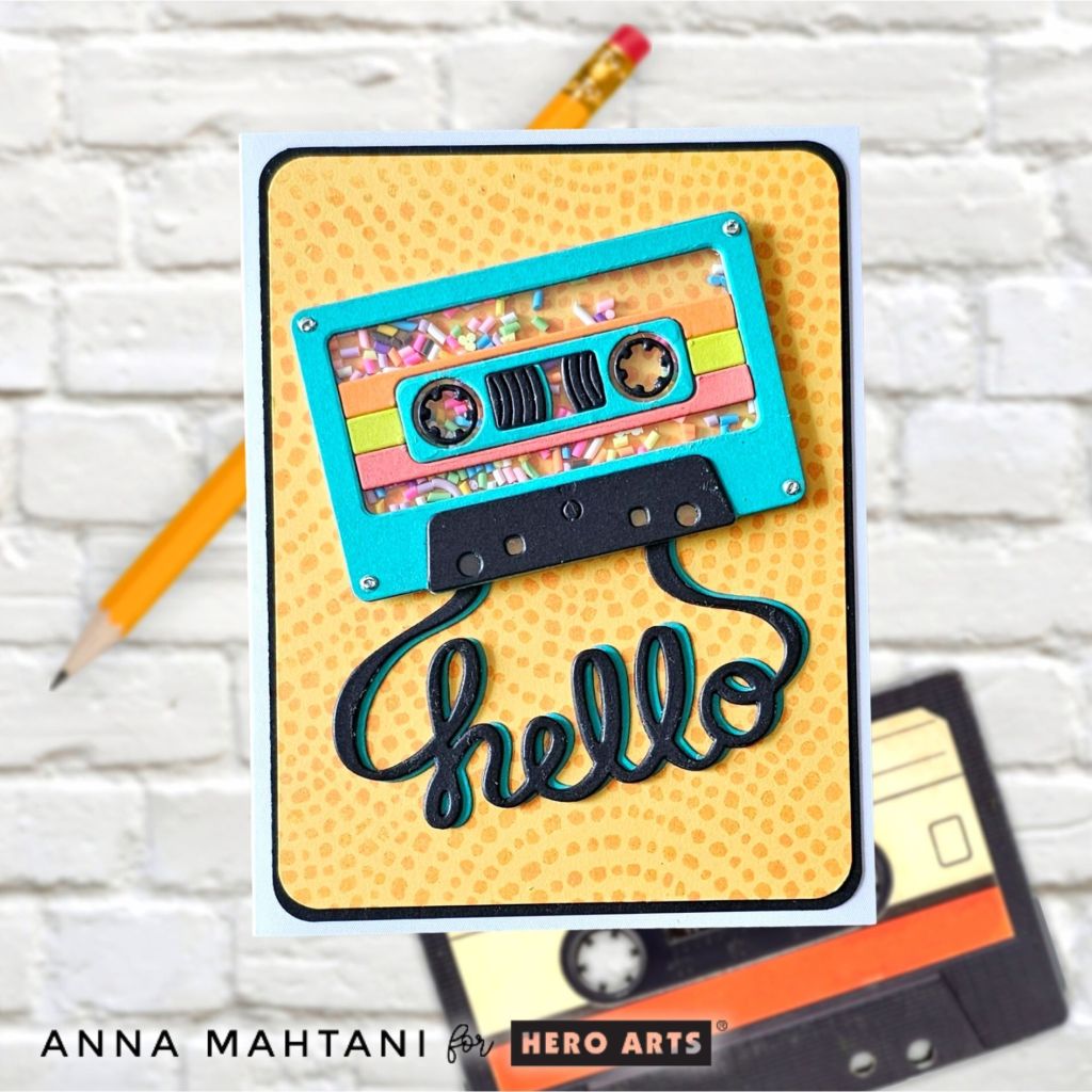 Hello friends! I have a fun retro card for you today and it’s a shaker! I’ll be using the Hero Arts July 2025 Die Set of the Month – Mix Tape!