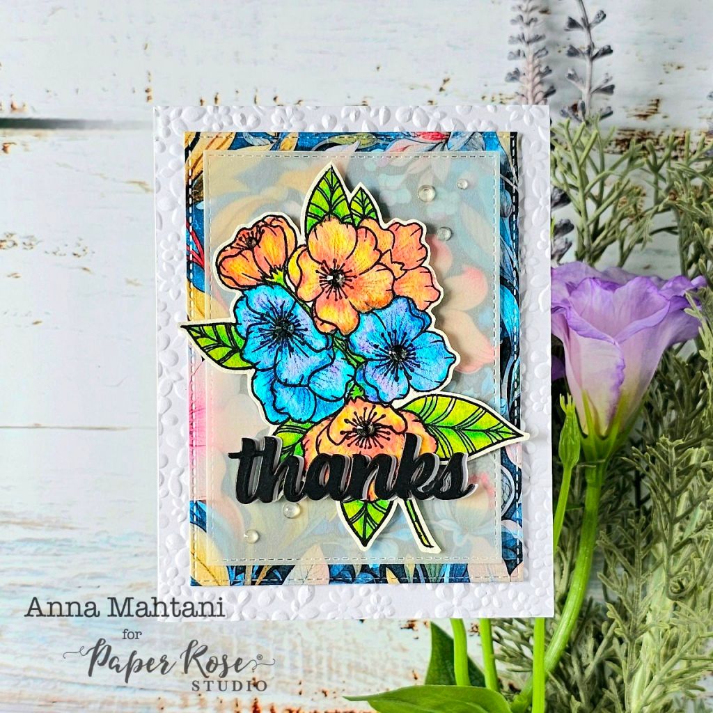 Hello! I’m sharing a card I created using the beautiful Paper Rose Studio Blossom Bouquet stamp set.
