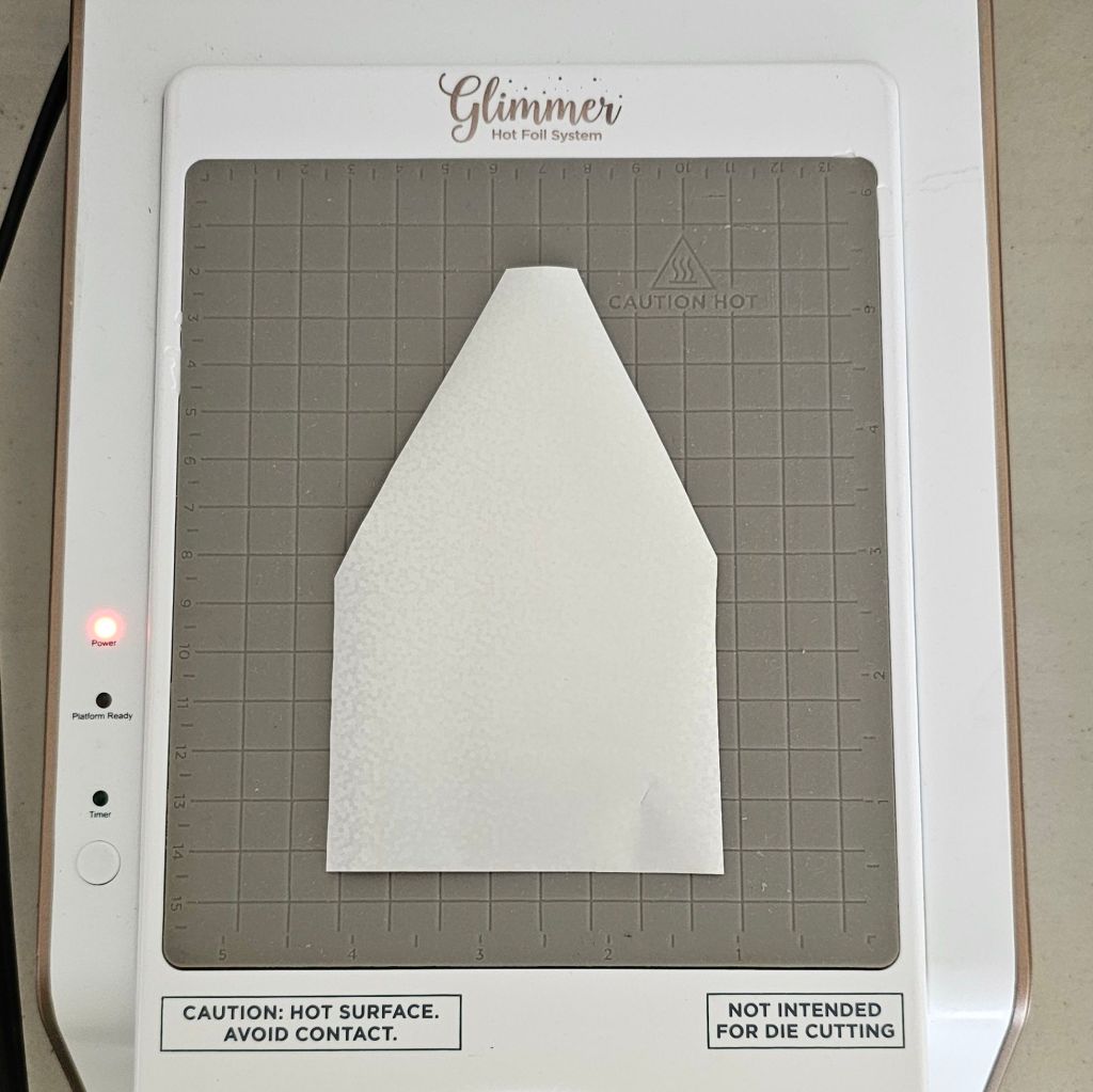 Next, I placed a SHim of paper. Sometimes you do not need this if the paper is very thick, because even a micromillimeter can cause the foil not to adhere properly. You can always experiment with different papers. In this case, when I first foiled I didn’t have a shim of paper and this was the result.