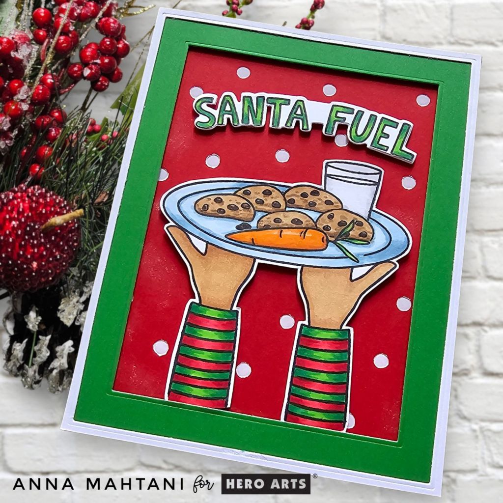 Hello crafty friends! I am so excited to dive head on into creating Christmas Cards and projects. Hero Arts has a fun-filled release this month called “Yuel Fuel”. The Hero Arts creative team is hopping over on Instagram to celebrate the new release. Details of the hop at the end of my post.