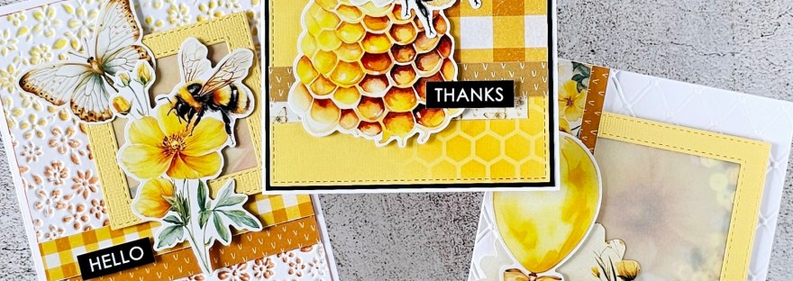 Hello! I have a set of cards to share using the Paper Rose Studio Bees & Butterflies Collection. I had so much fun creating these cards. I am calling them "collage" cards, because I put all the left over elements from my last journal/folio project into these cards. Card #1: For the background, I used… Continue reading Bee-utiful Collage Cards: Paper Rose Studio Bees & Butterflies Collection